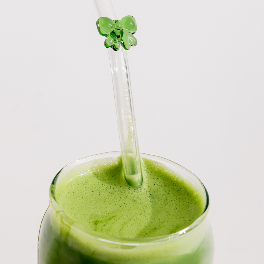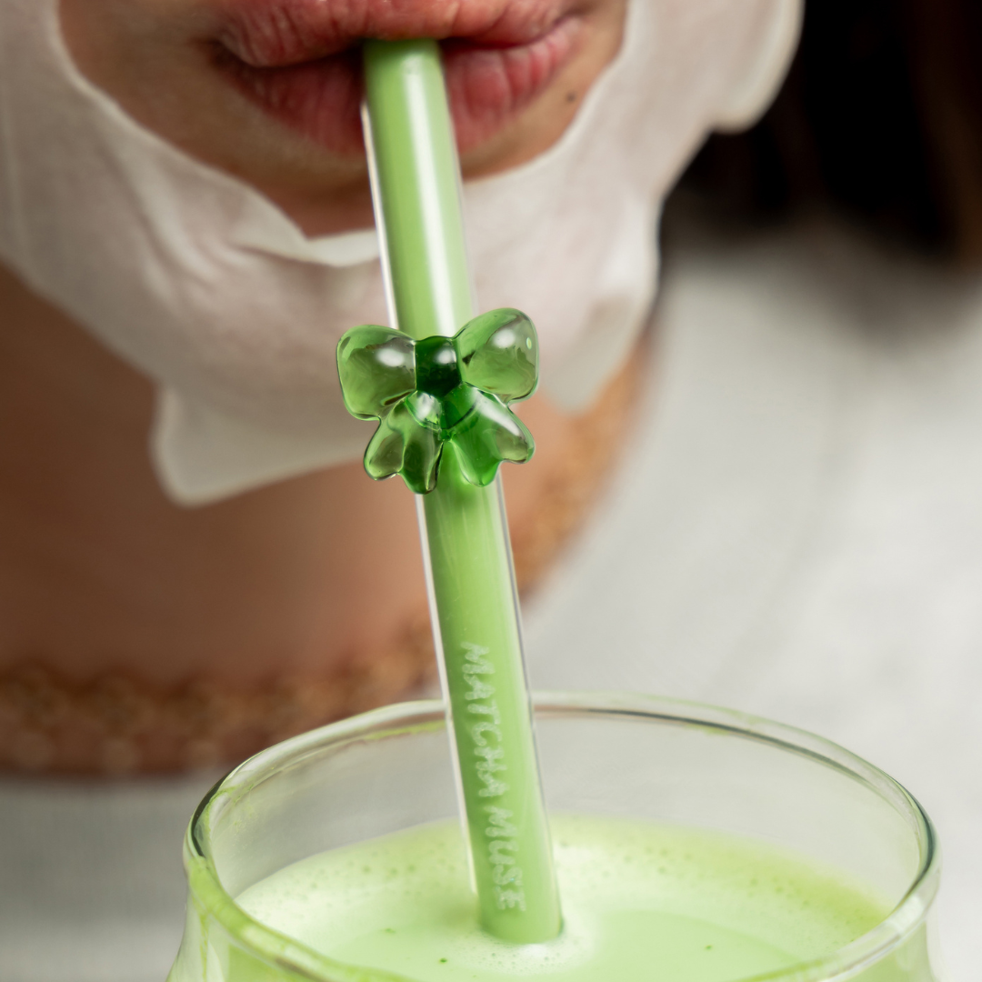 Elevate your daily cup of matcha with the Matcha Muse Green Bow Glass Straw. Our signature straw is engraved with our logo and adorned with a green ribbon bow detailing that elevates your sipping experience with a whimsical touch. Includes a cleaning brush and a Matcha Muse cloth bag. Say goodbye to plastic straws (and paper ones that melt in your cup) and enjoy a sustainable and coquette sipping experience while reducing your environmental impact!